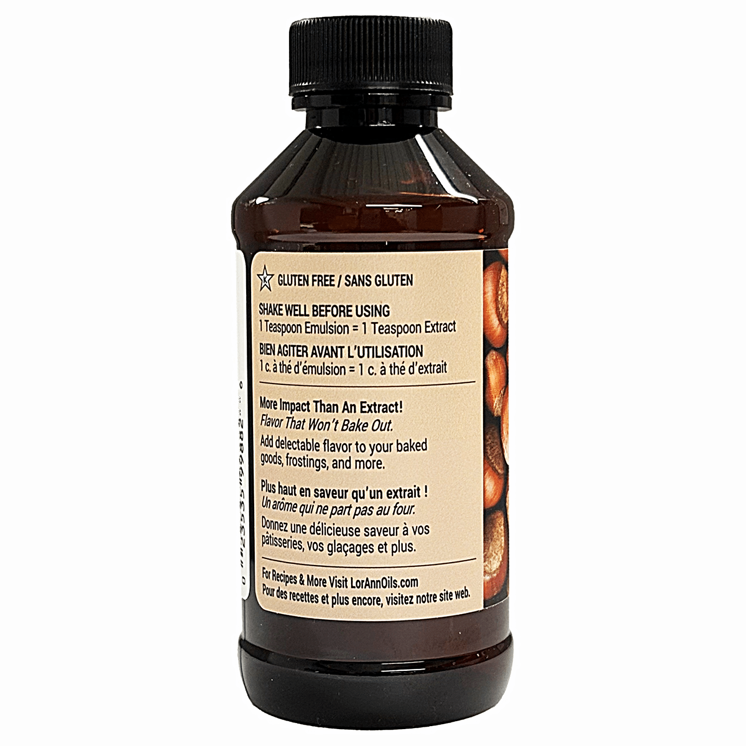 - LorAnn® Better Than Extracts™ Hazelnut Bakery Emulsion has a roasted hazelnut flavor with sweet, praline-like undertones. Hazelnut bakery emulsion is ideal for cookies, cakes, brownies and bars, muffins, quick breads, frostings, and more.