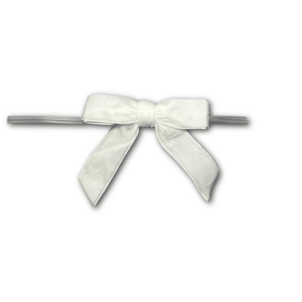 Small White Velvet Bow on Twistie ~ 50 Count